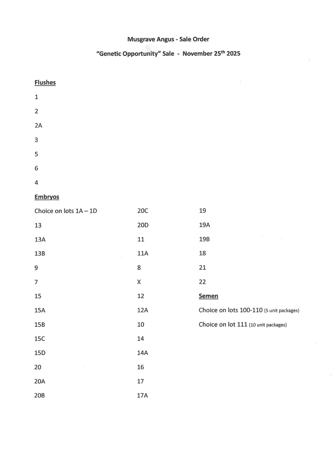 Checks for purchases will be sent directly to Musgrave Angus: